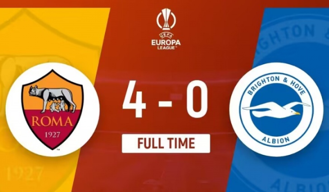 3月8日讯 北京时间3月8日凌晨1:45,欧联杯1/8决赛首回合,罗马坐镇主场迎战英超劲旅布莱顿,上半场,迪巴拉反越位成功单刀破门,卢卡库笑纳大礼扩大比分,半场战罢,罗马2-0布莱顿;下半场,曼奇尼抢点破门锦上添花,克里斯坦特头球破门锁定胜局,最终全场比赛结束,罗马4-0大胜布莱顿。双方次回合的较量将在北京时间3月15日凌晨在布莱顿主场进行。