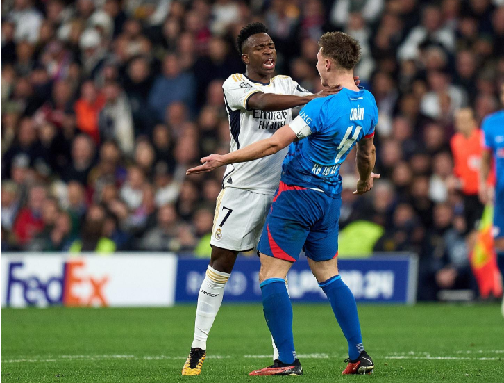 3月8日讯 欧冠1/8决赛次回合,皇马1-1战平莱比锡,两回合总比分2-1淘汰对手晋级欧冠8强!在比赛的下半场,维尼修斯锁喉奥尔班染黄的判罚引发争议。