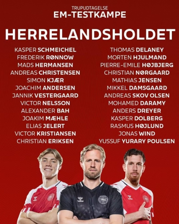 丹麦新一期大名单公布,埃里克森、克亚尔领衔,霍伊伦、克里斯滕森、霍伊别尔、德莱尼、小舒梅切尔等球员入选。丹麦将在本月国际比赛日与瑞士、法罗群岛踢友谊赛。