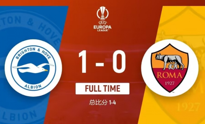 3月15日讯 北京时间3月15日凌晨4时,欧联杯八分之一决赛次回合,罗马客场对阵布莱顿。上半场,阿兹蒙打进一球,但是被判犯规在先,随后维尔贝克破门。罗马半场0-1落后布莱顿。下半场双方均无建树,斯维拉尔做出一次关键扑救。最终罗马客场0-1不敌布莱顿,以两回合总比分4-1淘汰布莱顿,晋级欧联八强。罗马各项赛事连续7场不败势头遭终结。