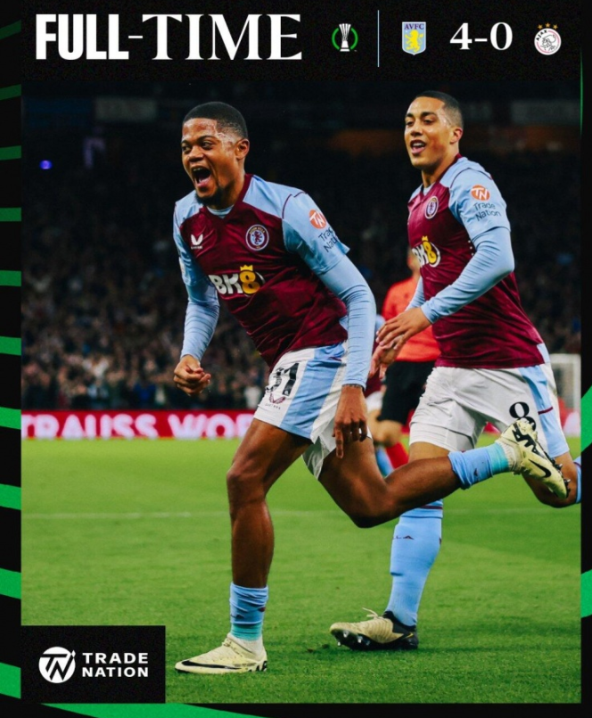 3月15日讯北京时间3月15日凌晨4时,欧会杯1/8决赛次回合,阿斯顿维拉主场迎战阿贾克斯,首回合双方0比0战平。上半场,沃特金斯头球破门打破场上僵局,但随后受伤被杜兰换下!半场战罢,阿斯顿维拉暂1-0阿贾克斯;下半场,曼斯维克被红牌罚下,贝利、杜兰和迪亚比连入三球扩大比分优势!阿斯顿维拉4-0阿贾克斯,总比分4-0晋级八强!