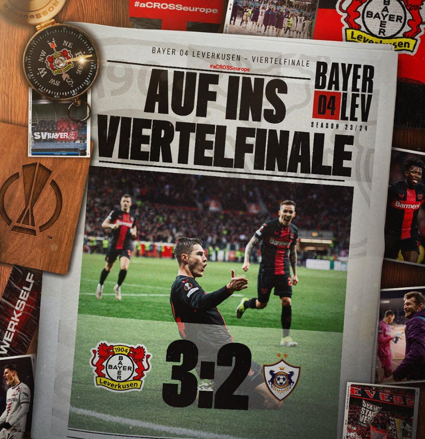 3月15日讯 欧联杯1/8决赛次回合,勒沃库森主场3-2逆转绝杀10人卡拉巴赫,两回合5-4晋级欧联8强。希克在第93分钟、第97分钟连入两球绝杀!