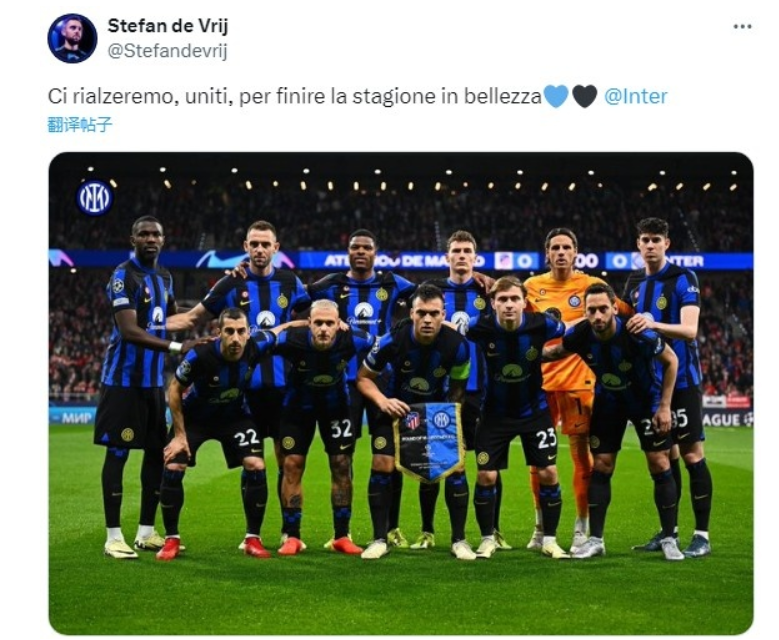 德弗里今日发文:“我们将再次崛起,团结一致,以自己的方式结束这个赛季。”