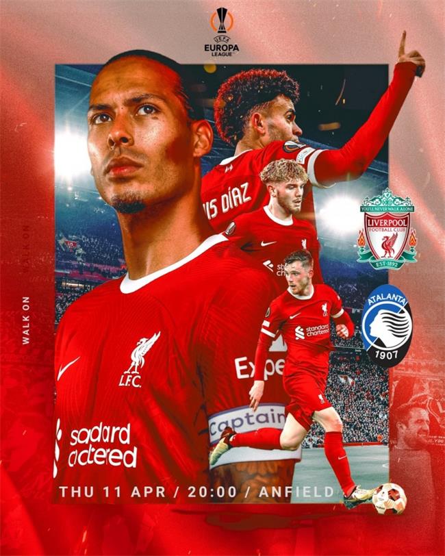 4月11日讯 北京时间明天凌晨3:00的欧联杯1/4决赛首回合,利物浦将在主场对阵亚特兰大。赛前,利物浦晒出海报预热这场比赛。