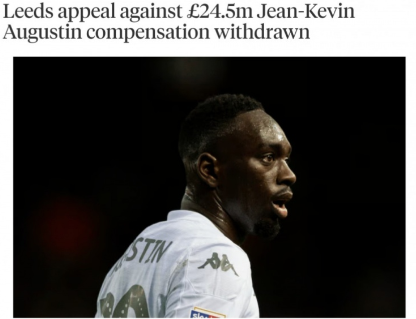 据报道,国际足联此前判定,利兹联需要向前队员让-凯文-奥古斯丁支付2450万英镑赔偿金。此后利兹联对此向体育仲裁法庭(CAS)上诉,但是目前,这项提出的上诉已经被撤回。
