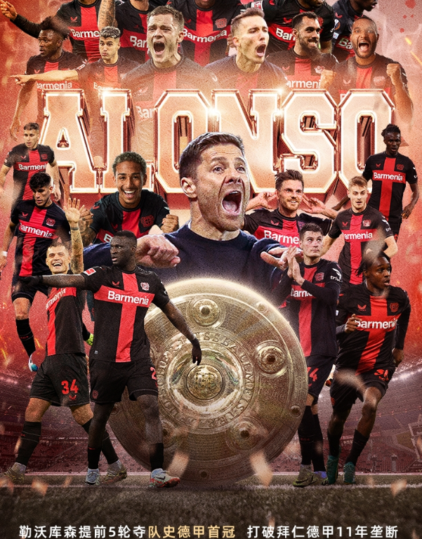 这也是勒沃库森建队120年来首次获得德甲冠军。勒沃库森此前分别在96/97、98/99、99/00、01/02以及10/11赛季获得联赛亚军,如今球队终于如愿拿下冠军锦标。