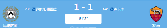 北京时间4月15日意甲联赛第32轮,乌迪内斯主场对阵罗马。上半场卢卡前插倒在禁区内,裁判表示没有问题,萨马尔季奇传门前,卢卡头球顶偏,奥亚尔禁区调整低射偏出,巴尔丹齐外围凌空低射被扑,赫伊森后场停球失误,罗伯托-佩雷拉笑纳大礼,帕雷德斯外围兜射偏出,半场战罢,场上比分乌迪内斯1-0罗马。