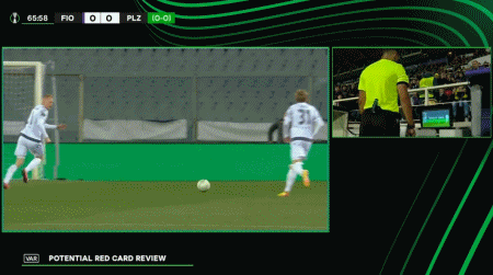 第67分钟,卡杜回防犯规吃到黄牌,VAR回看后改判直红被罚下