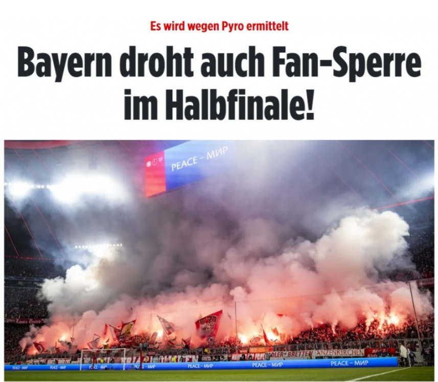 “此事的背景是欧足联控制、道德和纪律机构的一项判决。由于拜仁球迷燃放烟花违反了欧足联的规定,拜仁俱乐部将不得不在没有球迷的情况下进行客场比赛。”