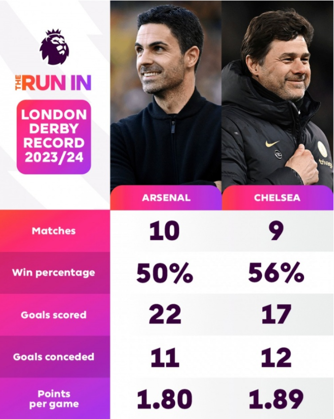 4月23日讯 北京时间明天凌晨3点,阿森纳将在英超第29轮补赛中主场对阵切尔西。英超官方对比了两队本赛季伦敦德比的数据,阿森纳胜率50%,切尔西胜率56%。