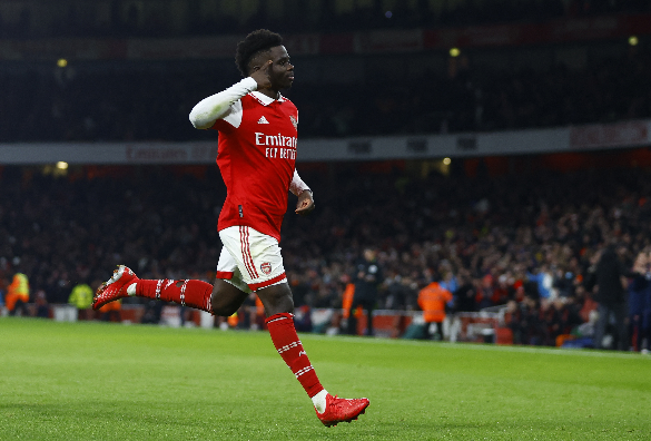 4月28日讯 在本轮英超阿森纳对阵热刺的比赛中,萨卡打入一球。