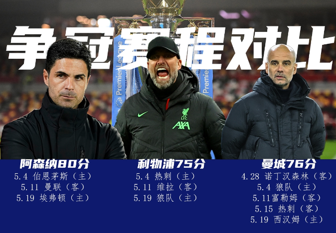 英超已进入最后冲刺阶段,阿森纳还需前往老特拉福德挑战曼联,曼城则将客战热刺。
