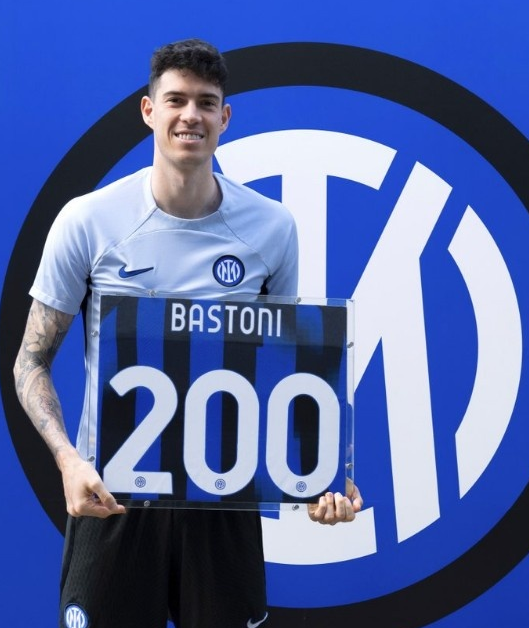 今天,他领取了自己的200场里程碑球衣,国际米兰官推则晒照祝贺:“蓝黑生涯200次出场,7座冠军,干得好,巴斯托!”
