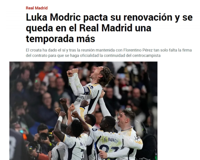 05月22日讯 《马卡报》最新消息,38岁的卢卡-莫德里奇将与皇马续约一年。