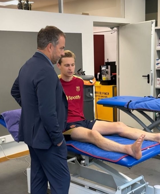 5月30日讯 据德国天空体育记者Florian Plettenberg报道,弗里克在今天立即与德容进行了交谈。