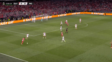 第116分钟,埃泽传中,卡埃比俯身头球破门,奥林匹亚科斯1-0佛罗伦萨