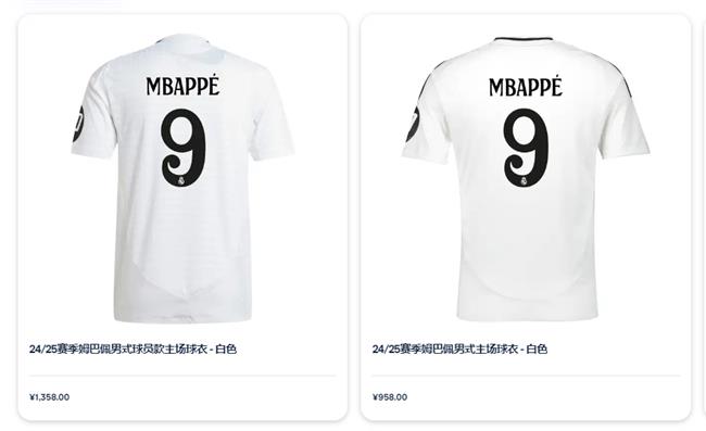 24/25赛季姆巴佩印号主场球衣售价为人民币958元,球员版的售价为1358元,加印欧冠袖章、西甲袖章的价格分别为119元。
