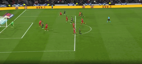 第46分钟,扳回一城,吉尔摩破门,苏格兰1-2
