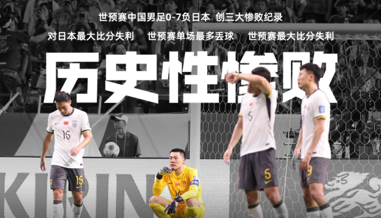国足客场0-7惨败日本,此役创造了中国男足对日本的历史最大比分失利、世预赛单场最多丢球以及世预赛最大比分失利。