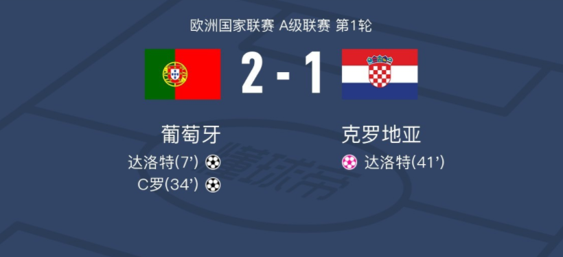 C罗破门完成生涯900球里程碑,达洛特破门+乌龙,葡萄牙2-1击败克罗地亚。