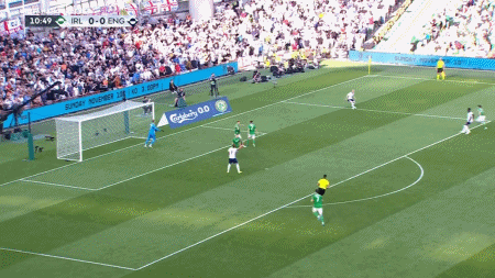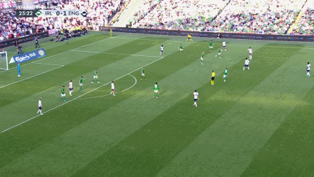 爱尔兰第26分钟,行云流水!赖斯助攻,格拉利什低射破门,英格兰2-0爱尔兰