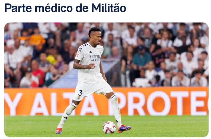 皇马官方公布球员伤情,米利唐右腿肌肉遭遇损伤。