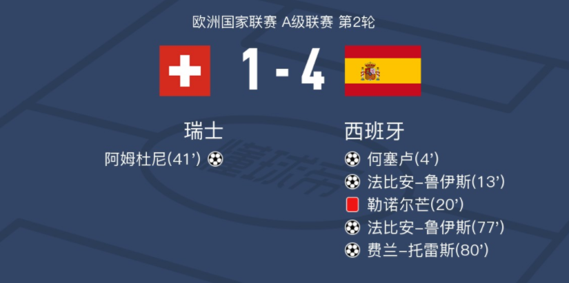 第76分钟,费兰-托雷斯助攻,法比安-鲁伊斯推射破门,西班牙3-1