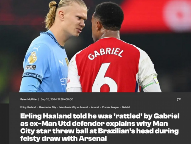曼联旧将韦斯-布朗对此表示:“我觉得那天加布里埃尔让哈兰德感到有些不安,我们都看到两人之间发生了争执,这说明哈兰德也意识到与加布里埃尔对抗是非常艰难的,尽管他取得了进球。如果哈兰德在这场比赛踢得很轻松,他就会表现得很开心,但是这次哈兰德被加布里埃尔缠了一整场,这种情况下他就会失去理智。