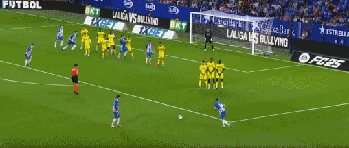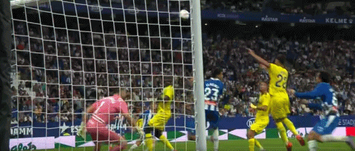 第45+6分钟,巴埃纳助攻佩雷斯头球扳平,比利亚雷亚尔1-1西班牙人