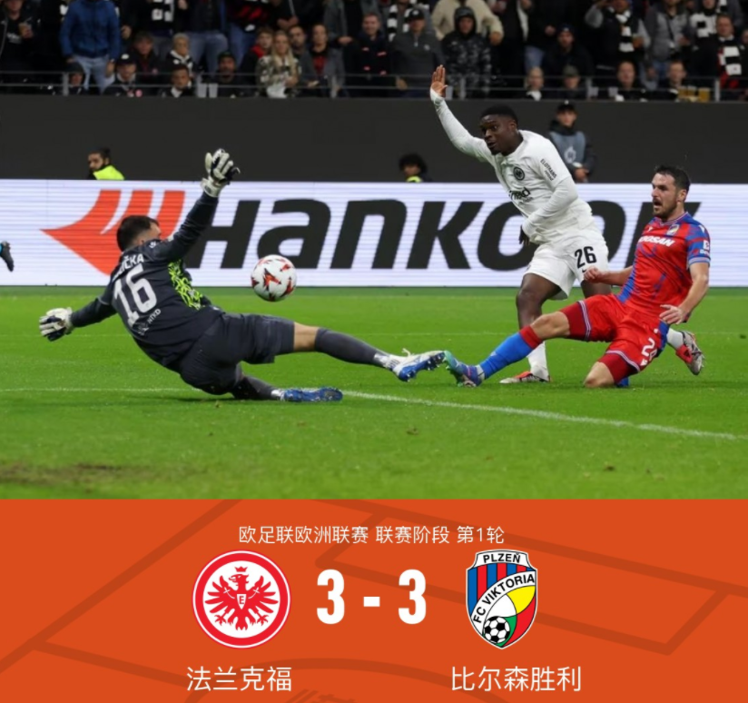 法兰克福3-3比尔森胜利,埃基蒂克传射,耶梅尔卡救主