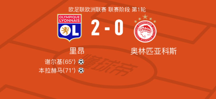 里昂2-0奥林匹亚科斯,谢尔基建功,本拉赫马锁定胜局