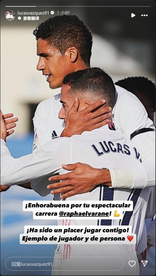 31岁法国中卫瓦拉内宣布退役,他效力皇马时期的队友巴斯克斯社媒发文致敬。