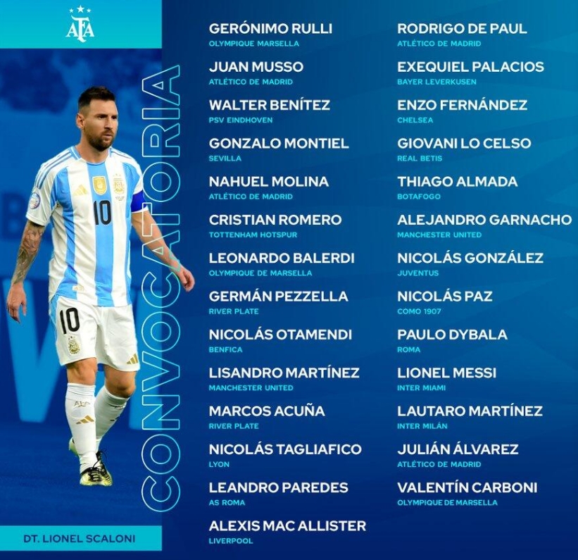 阿根廷公布名单,梅西回归,劳塔罗、阿尔瓦雷斯在列。