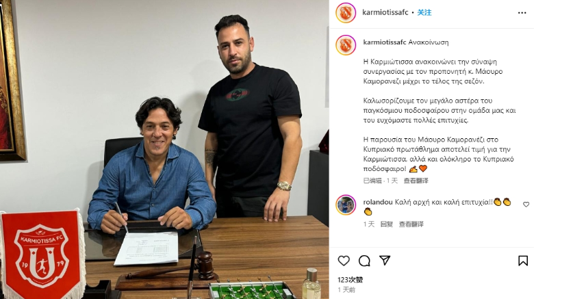当地时间本周三,卡米奥提萨俱乐部在官方Instagram发布公告,宣布新主帅卡莫拉内西上任,双方签约至本赛季结束。卡米奥提萨目前1胜2平2负,在塞浦路斯甲级联赛积分榜排名第11位。