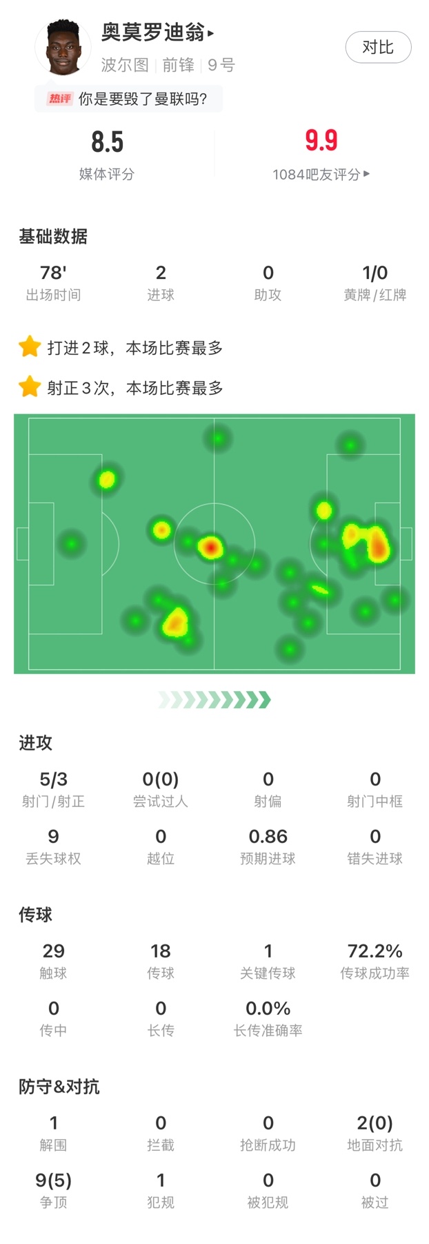 奥莫罗迪翁本赛季欧联+葡超一共6场7球,目前德转身价为3500万欧。