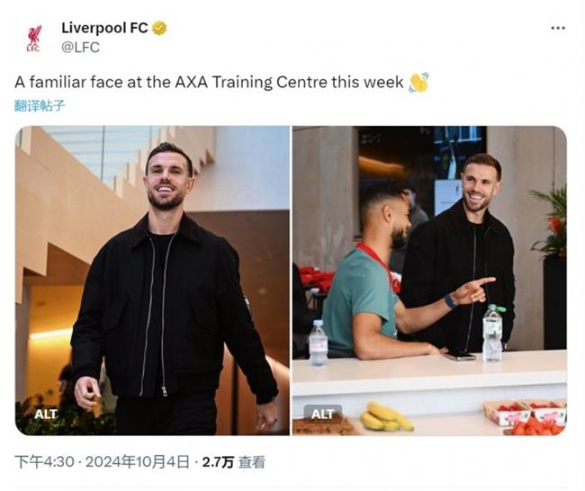 利物浦官方更新社媒动态,晒出亨德森探班俱乐部的照片。