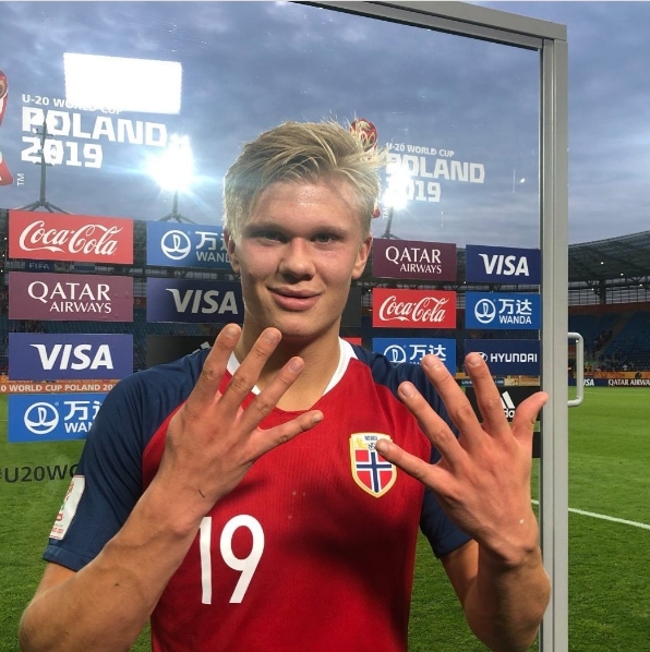 2019年,哈兰德曾在u20世界杯单场进9球,从此开始他“开挂”的一生。