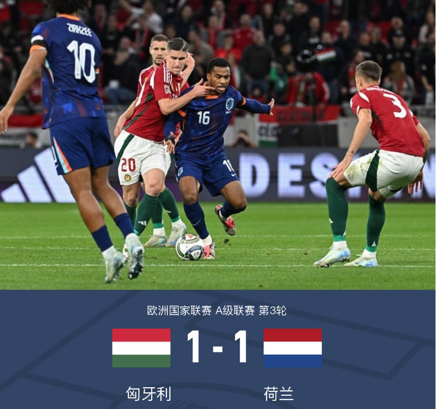 北京时间10月12日2:45,欧国联A级联赛第3轮,荷兰客场挑战匈牙利。上半场,罗兰-绍洛伊低射击中立柱,赖因德斯远射被门将扑出,若尔特-纳吉助攻罗兰-绍洛伊推射破门,加克波抽射皮球被门将没收。下半场,德弗赖头球攻门顶偏,赖因德斯小角度低射打偏,布罗贝伊头球攻门偏出球门,邓弗里斯头球破门扳平比分,随后范戴克累积两黄被罚下,最终,荷兰客场1-1战平匈牙利。