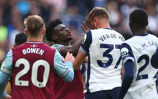 安杰·波斯特科格鲁与米基·范德文对英足总的决定表达了不解,英足总对托特纳姆热刺开出了罚单,理由是在上周末西汉姆联的穆罕默德·库杜斯对荷兰后卫的“挥拳”事件中,热刺未能约束住自家球员的行为。本周三,英足总宣布,鉴于热刺未能确保球员在比赛中避免不当或挑衅举动,俱乐部被处以2万英镑的罚款,这一事件发生在10月19日热刺4比1战胜西汉姆联的比赛中。第82分钟,库杜斯对范德文的粗暴动作引发了两队球员间的激烈争执,随后,范德文在队友帕佩·马塔尔·萨尔同样遭受库杜斯推搡前倒地。起初,主裁判安迪·马德尔仅向库杜斯出示黄牌,但在VAR的介入下,黄牌升级为红牌。西汉姆联同样面临与热刺相同的罚款,而库杜斯事后也因暴力行为受到指控。