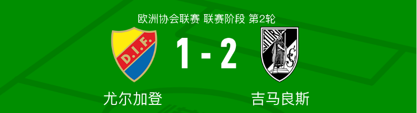 在欧洲协会联赛的较量中,尤尔加登迎战吉马良斯。比赛中,吉马良斯的若昂-门德斯送出精妙助攻,马努成功破门,为球队先拔头筹。随后,尤尔加登的斯托尔也不甘示弱,助攻丹尼尔-斯滕松扳平比分。比赛接近尾声时,吉马良斯的努诺-桑托斯再度建功,帮助球队锁定胜局。最终,吉马良斯以2比1战胜尤尔加登。
