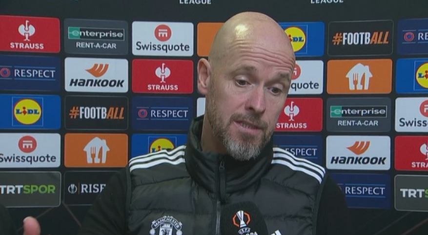 10月25日讯 欧联杯第三轮,曼联客场1-1-战平费内巴切。赛后,曼联主帅滕哈赫接受采访。