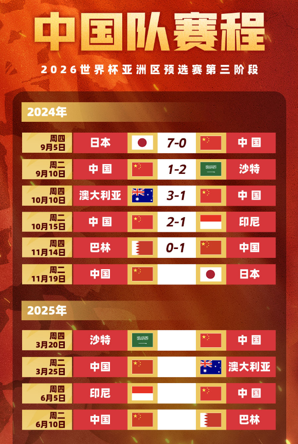国足后续赛程:今年最后一战!11月19日厦门主场对阵日本