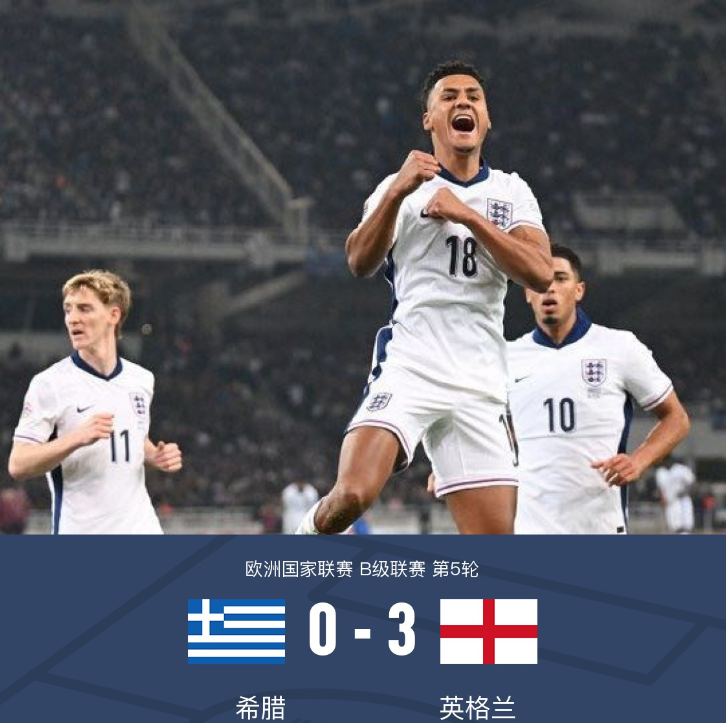 欧国联-英格兰3-0希腊升至头名 贝林厄姆造乌龙琼斯首秀破门