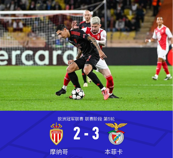 本菲卡3-2逆转十人摩纳哥,阿姆杜尼绝杀迪马利亚2助救主