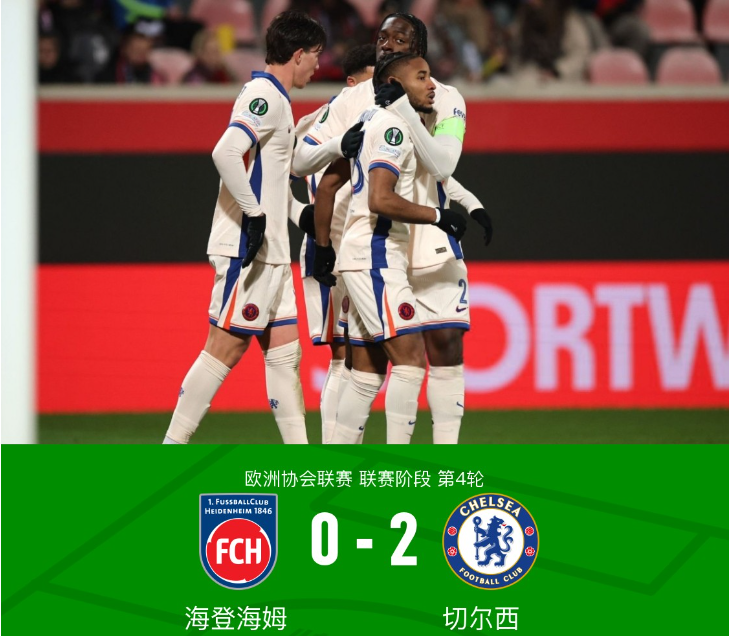 在欧洲协会联赛的较量中,切尔西与海登海姆展开了一场激烈的对决。下半场桑乔送助攻,恩昆库破门打破僵局,比赛尾声切尔西流畅配合,桑乔助攻穆德里克爆射破门,补时阶段,卡萨代伊因累计两张黄牌被罚下场。本场比赛约恩森高接抵挡,发挥神勇。最终,切尔西以2比0的比分战胜海登海姆,取得了比赛的胜利。