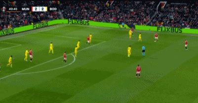 第50分钟,霍伊伦门前推射梅开二度,曼联3-2反超比分