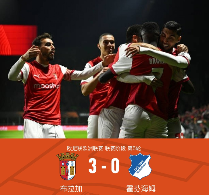 在欧足联欧洲联赛的较量中,布拉加与霍芬海姆展开了一场激烈的对决。布拉加的布鲁马率先为球队打开了胜利之门。随后,里卡多-奥尔塔送出精妙助攻,罗热-费尔南德斯再下一城,进一步扩大了领先优势。比赛接近尾声时,维托尔-卡瓦略再度建功,为布拉加锁定胜局。最终,布拉加以3-0的比分完胜霍芬海姆,展现了强大的实力和出色的团队配合。
