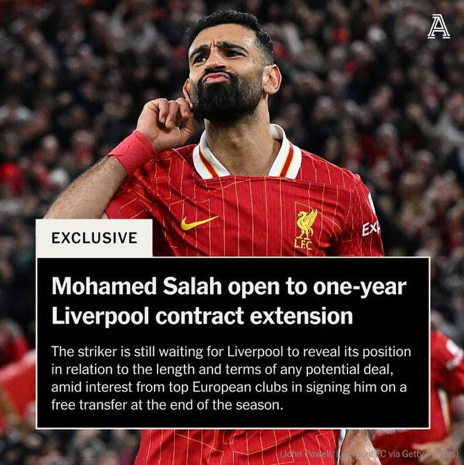 据The Athletic消息,萨拉赫愿意接受利物浦为期一年的续约合同,但他对俱乐部处理谈判的方式越来越气愤。