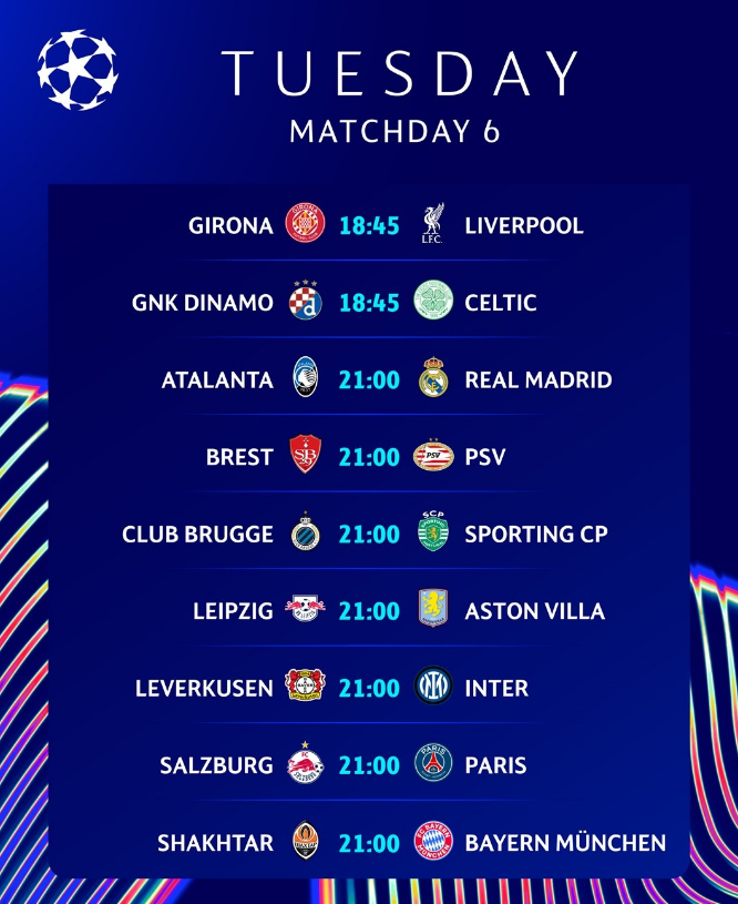 欧冠联赛阶段第6轮明日开战,9场比赛将在北京时间12月11凌晨打响。利物浦将在客场对阵赫罗纳,亚特兰大将在主场迎战皇马,药厂与国米迎来对决,巴黎、拜仁也将出战。