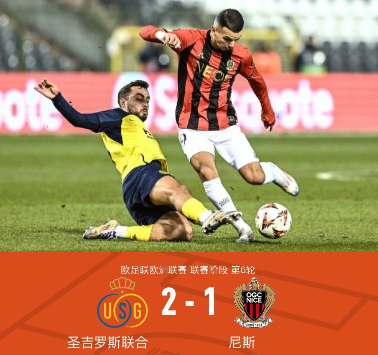 在欧足联欧洲联赛的较量中,圣吉罗斯联合迎战尼斯。比赛中,圣吉罗斯联合的弗拉尼奥-伊万诺维奇表现出色,成功打入两球,展现了出色的进攻能力。尼斯方面,盖桑在迪奥普的助攻下也取得了进球为球队贡献了一份力量。最终,圣吉罗斯联合以2-1的比分战胜尼斯,取得了比赛的胜利。